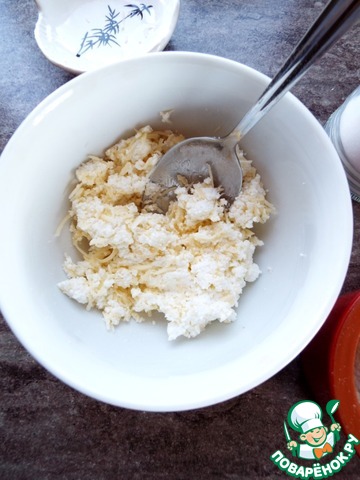 Из творожно-сырной массы скатать небольшие шарики, немного приплюснуть.