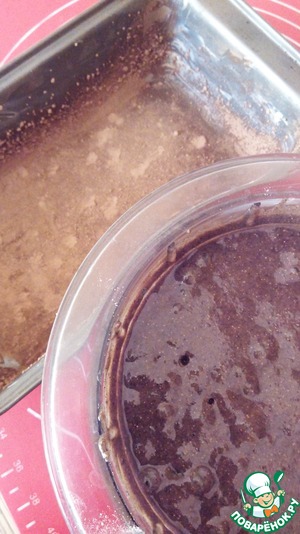 Форму для кекса смазываем малом и обсыпаем какао.