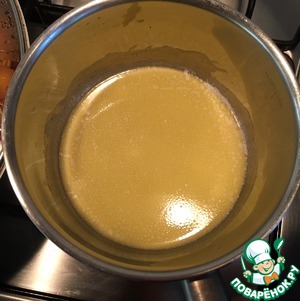 Приготовим сырный соус бешамель. Выложим в сотейник 40 гр. сливочного масла, растопим его на маленьком огне.