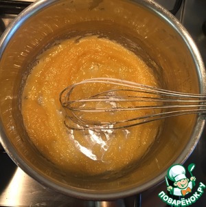 Постоянно мешая венчиком, добавляем 1 ст. ложку с горкой муки.