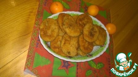 Мокрыми руками формируем котлетки, обваливаем их в панировочных сухарях и выкладываем в разогретую сковороду с маслом.