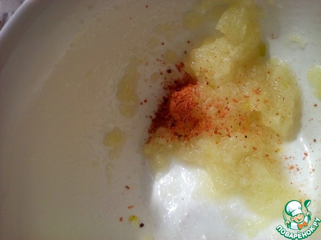 Добавить сахар и все тщательно перетереть с помощью ложки. Это важный процесс, уделите этому время и хорошенько все перетрите. Добавьте щепотку красного или черного перца. Кто что больше любит.