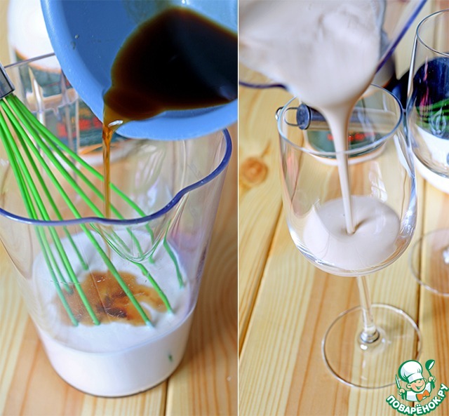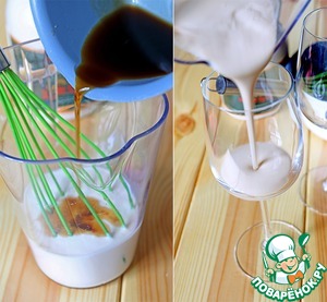Ну а дальше - все просто. Хорошо перемешиваем ряженку, кофе и кленовый сироп. Кленовый сироп - это НЕЧТО. Если не пробовали - попробуйте. Если нет возможности - замените его чем-то сладким, но ароматным, любым сладким сиропом, медом (лучше тогда растворить в теплом кофе), можно сделать сахарный сироп, смешав 1:1 сахар и кипяток, добавить туда что-нибудь ароматное, ту же ваниль. Наливаем коктейль в бокалы - и приятного аппетита!