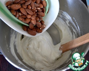 Всыпать неочищенный миндаль. Такое печенье можно прекрасно приготовить и с другими орехами — грецкий, фисташки и т. п. Еще раз аккуратно перемешать.