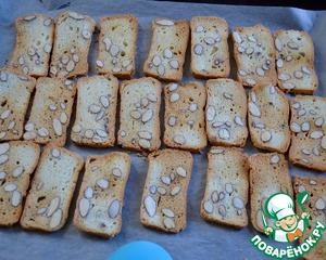 Выложить нарезанные ломтики на противень, застеленный пекарской бумагой и выпекать в разогретой до 150 градусов духовке (в режиме конвекции) до состояния, когда края печенья начнут приобретать золотистый цвет. Следите по своей духовке! Может потребоваться 7-9 минут.