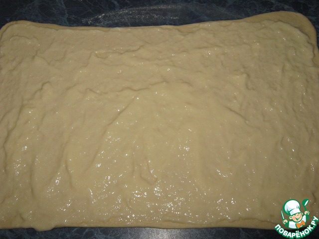 Замесить мягкое тесто. Плотно накрыть и убрать в тёплое место на час.