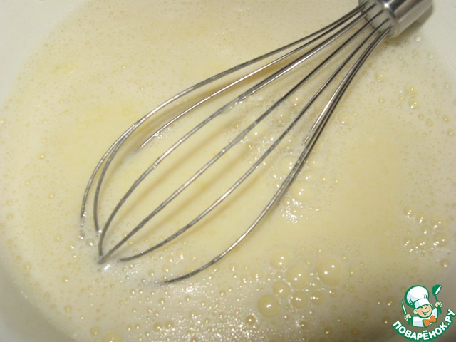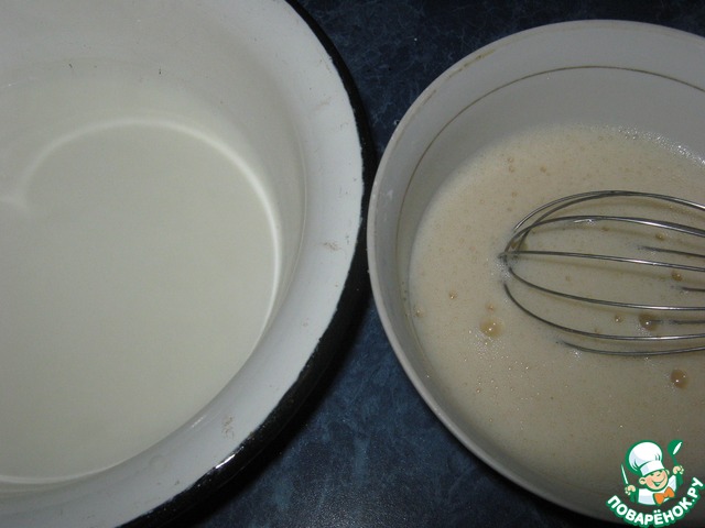 100 мл. молока довести почти до кипения и влить в него тонкой струйкой сахарно-молочно-яичную смесь.