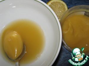 В оставшуюся жидкость добавить мёд и сок лимона 4 ст. л. Перемешать.