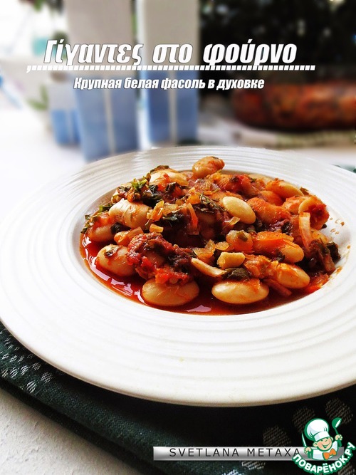 У нас это блюдо называется "ГИГАНДЕС СТО ФУРНО". Как говорили наши бабушки, блюда из бобов - блюда для бедных. На самом деле, эти блюда популярны и востребованы, так как они очень полезны и вкусны. Нет ни одной греческой семьи, которая хотя бы раз в неделю не готовила бобовые Сегодня я представлю рецепт от Аргиро.