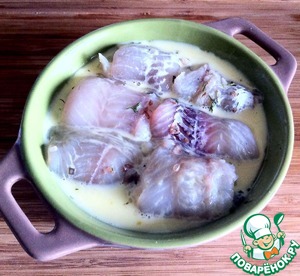 • Яйца смешать с молоком и залить этой смесью рыбу.