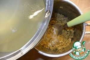 • Влить в ореховую смесь бульон (обязательно теплый, горячий нельзя!) и