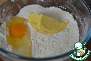 75 гр. сахара, масло и 1 яйцо смешать. -