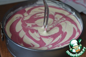 На тесто, поочередно половником выливаем белую и малиновую смесь.