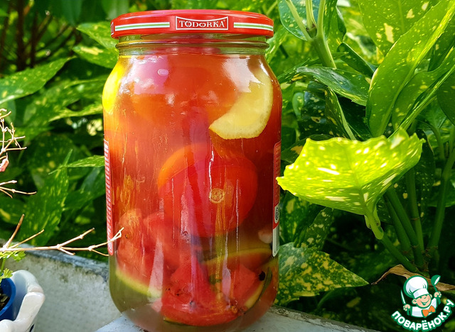 Через сутки получились малосольные помидорчики и арбуз с запахом и привкусом лимона!