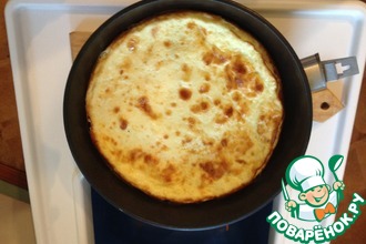После того, как все готово, начинается процесс творения конвертиков: немного яичной массы выливается на раскаленную сковороду, желательно небольшого диаметра, чтобы получился ровный круг, минуту-другую поджаривается и переворачивается.