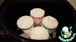 Поставила баночки в мультиварку и включила программу "йогурт" на 10 часов. После окончания программы я убрала мацони в холодильник на несколько часов.