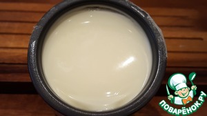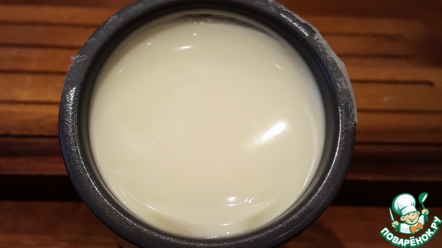 • Я приготовила мацони из пастеризованного молока 3,6% жирности при помощи закваски "мацони" от компании Орсик. Нагрела молоко до комнатной температуры, перелила его в чистую ёмкость и добавила закваску. Перемешала в течение трёх минут и разлила молочную смесь по стерилизованным керамическим баночкам. Накрыла баночки пергаментом и закрепила его резинками.