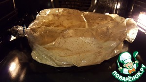 Грудку утёнка промыть и обсушить. Можно смешать мацони с хмели-сунели и обмазать утёнка, а можно как я, насыпать приправу на грудку и поместить её в пакет для запекания.