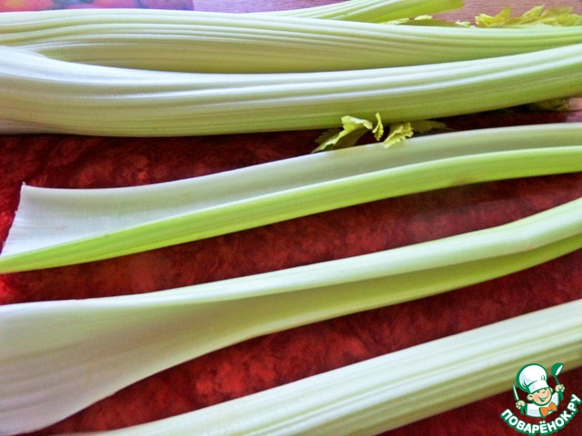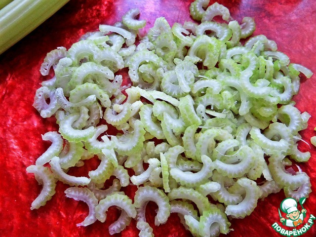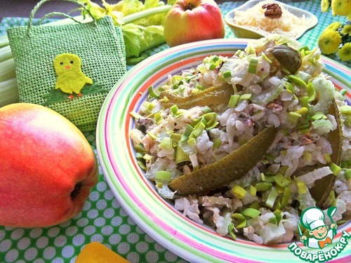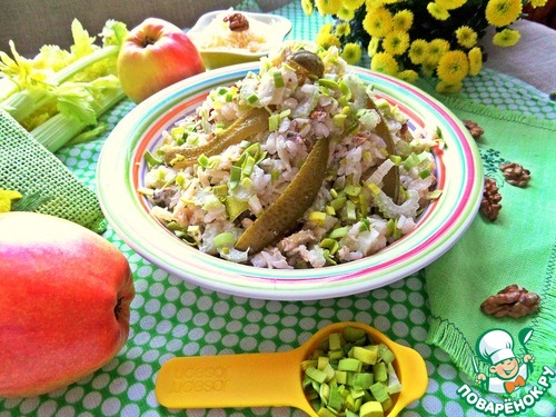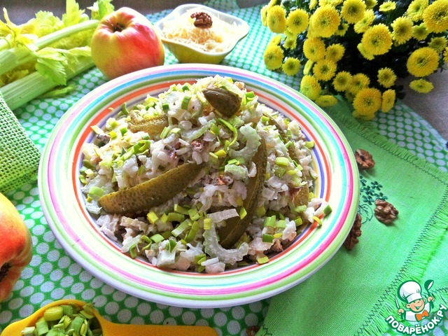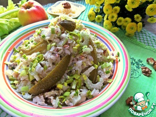 После сельдереевого корня хочу угостить Вас салатом из стеблей. Классическое дополнение из орешков и сыра только дополнят его вкус, а рис добавит сытности!