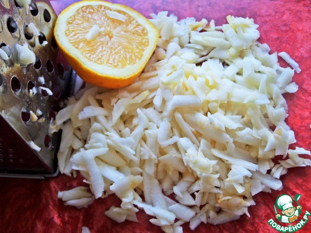 • Яблоко натереть или нарезать-не важно. Полить лимонным соком.