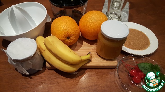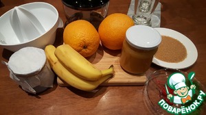 Выжать из апельсина сок и добавить к банановому пюре, добавить мёд. Ещё раз пробить.