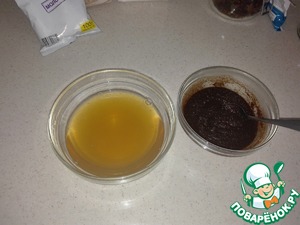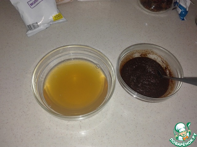 В другой ёмкости залить мед оставшимся количеством кипятка.