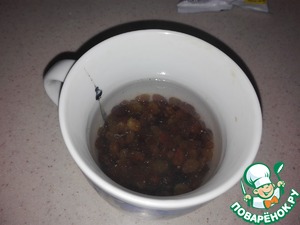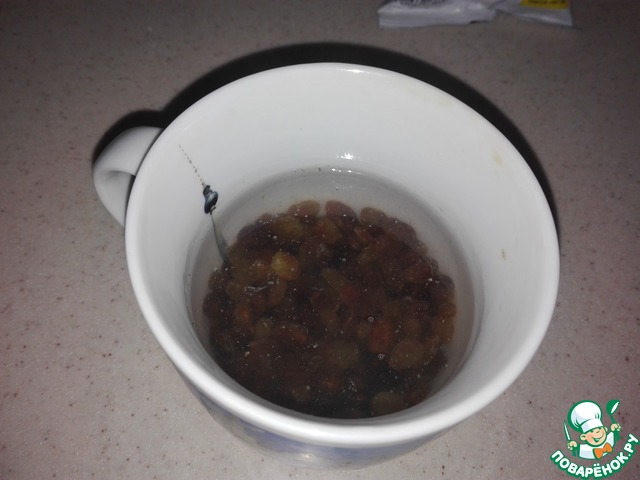 Слить воду из изюма, обсушить его на бумажном полотенце и добавить к сухим компонентам. Полученную смесь хорошенько перемешать.