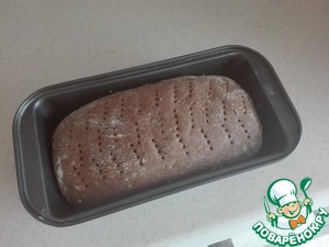 Снять пленку. Вилкой хаотично нанести сверху проколы. Разогреть духовку до 190 градусов. Сбрызнуть водой из пульверизатора на стенки духовки и поставить форму в духовку на 40 минут. Можно смазать верх хлеба русской горчицей, но это на любителя.