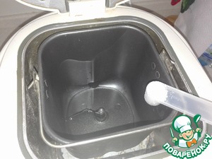 В чашу хлебопечки влить растительное масло, бальзамический уксус и добавить соль.