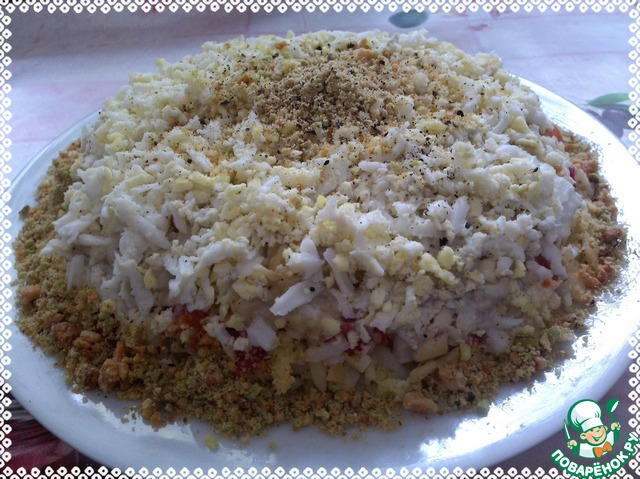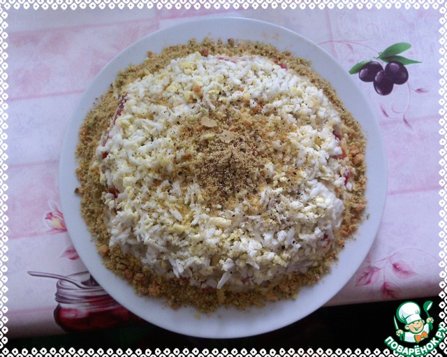 5-й слой (последний) - натертое яйцо без майонеза. -