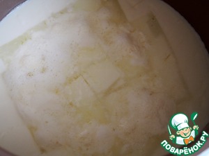 После сквашивания сгусток «разрезать» ножом вдоль и поперек емкости шагом 1,5-2 см (вид сверху - «решетка»).