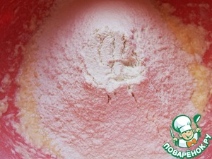 Просеять муку с солью. Муку лучше сразу всю не добавлять, т. к. может потребоваться на 1-2 ст. л. больше или меньше.