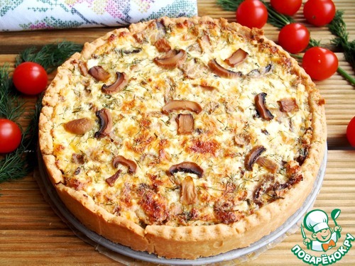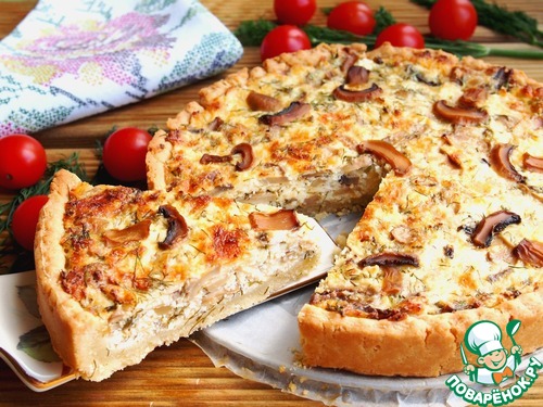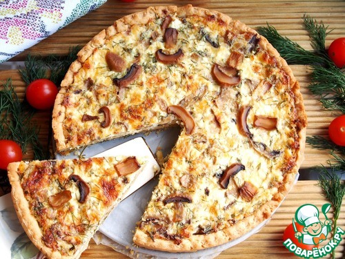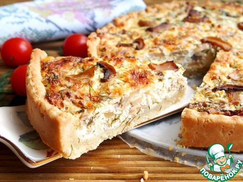 Рецепт «Открытый творожно-сырный пирог с шампиньонами»: