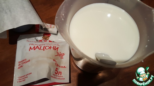 Я приготовила мацони в домашних условиях из пастеризованного молока 3,6% жирности при помощи закваски для приготовления мацони от компании Орсик.