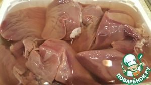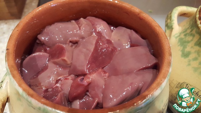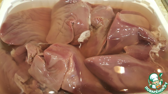 Печень индюшки промыть и при наличии времени залить чистой холодной водой или молоком. Можно этого не делать. Я залила печень водой на 1 час.