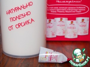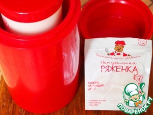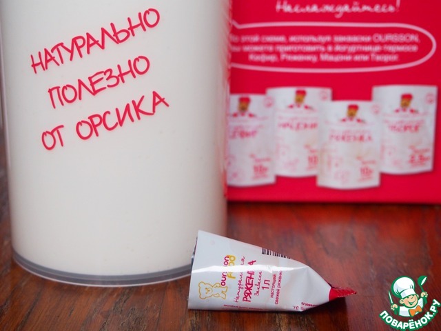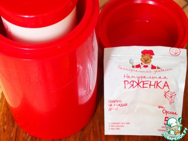 Простерилизовать посуду для приготовления ряженки. Закваску высыпать в молоко комнатной температуры (22-24°С). Дозировка: 1 пакетик закваски рассчитан на 1 литр молока. Молочную смесь после внесения закваски тщательно перемешать чистой сухой ложкой в течение 2-3 минут до полного растворения закваски. Емкость необходимо накрыть крышкой. Поставить получившуюся молочную смесь в теплое место (35-40°С) на 6-10 часов для сквашивания (я использовала йогуртницу-термос OURSSON).