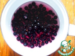 Пока кекс остывает, приготовим сироп. Для этого в ковшике соединить черную смородину, сахар и воду. Довести до кипения и проварить 10-15 минут.