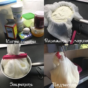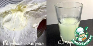 (Полученную сыворотку можно использовать для блинчиков. Сыворотка хороша для вымачивания и размягчения жесткого мяса говядины или лосятины. Я ее просто выливаю...) -