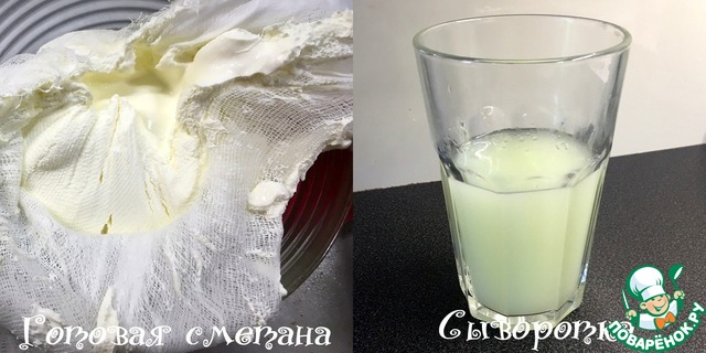Первый делом подготовим сметану для крема. Для этого нам необходимо убрать лишнюю сыворотку, которая делает сметану жидкой.