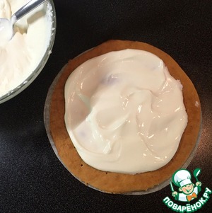 Прижатый торт смазываем остатками крема, не забываем хорошо промазать края торта по бокам. -