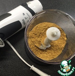 Из остатков краевых частей коржей делаем крошку при помощи измельчителя.