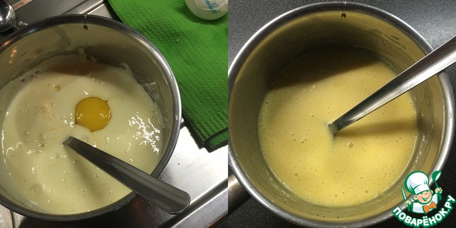 Вбиваем яйцо, хорошо перемешиваем венчиком.