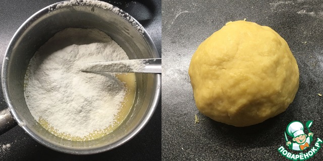 Тесто скатываем в шар, убираем в полиэтиленовый пакет, убираем в холодильник на 30 минут. -