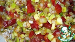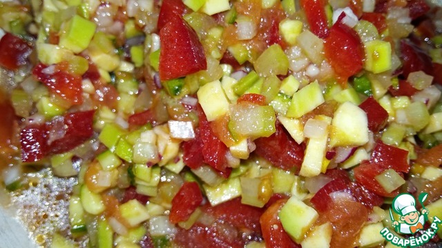 Для сальсы все овощи порезать как можно мельче и заправить соусом из растительного масла, лимонного сока, 1 зубчика чеснока соли и сахара. В заправку, по желанию можно добавить столовую ложку воды. Зелень очень обогащает вкус сальсы. Ее Вы можете выбрать по своему вкусу. я сегодня использовала зеленый базилик.