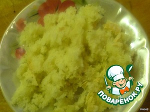 На смеси масел на большом огне обжариваем порционные куски курицы до румяного цвета, курочку временно выкладываем на тарелочку.