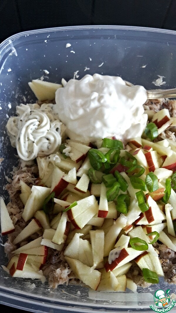 С копченой скумбрии содрать шкурку, освободить от головы, плавников и хвоста. Разделить по хребту пополам и освободить от всех видимых костей. Размять мясо вилкой. Оставшиеся косточки хорошо видны, их легко убрать, но даже если что-то и останется - косточки у скумбрии мягкие, это не карп.