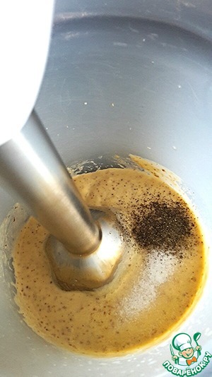 В узкой емкости смешаем желтки, горчицу и растительное масло. Измельчим погружным блендером.