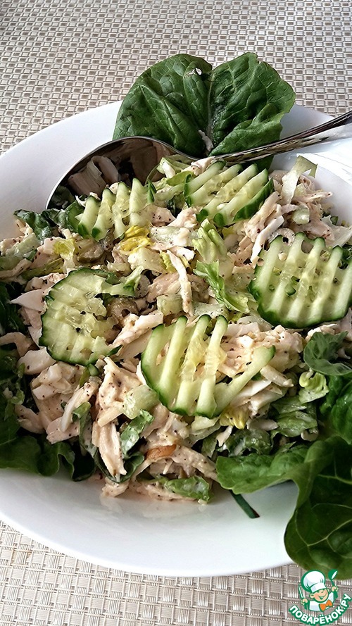 Как ни странно, в моей семье куриные салаты "не шли". Так, поковыряют, склюют, но без энтузиазма. И я пустилась в авантюрные комбинации продуктов, потому как, по моему убеждению, жить без куриного салата как-то грустно. Экспериментировала с составляющими и заправками - и в один прекрасный день... В общем, предлагаю вам, поварята, попробовать результат моих трудов, который на нашем праздничном столе теперь уже является "гвоздем программы".