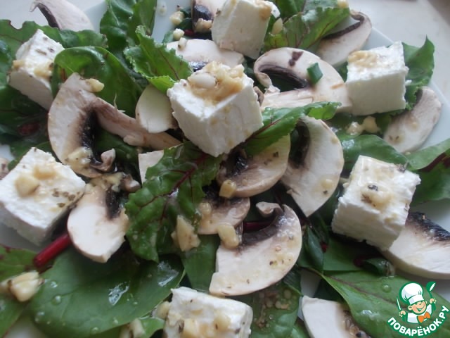 Рецепт «Салат с сырыми шампиньонами и творогом»: