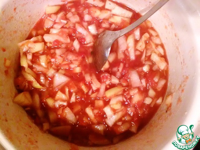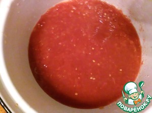 В глубокую посуду, заливаем сок томатный (у меня домашний, есть в моих рецептах).